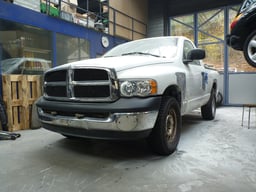 Der Ram kam ende Oktober als Zukauf zu uns, um Ihn für den Wiederverkauf aufzubereiten. Der Zustand des Ram war technisch wie optisch so erbärmlich, dass man bei den benötigten Arbeiten schon fast von "Teilrestauration" reden kann. Er hatte schon ein hartes Leben als "Work-Truck" ohne grosse Pflege & Sorgfalt hinter sich.